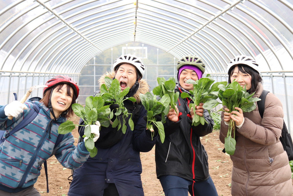 おいしい里山料理を食すため自転車に乗っていざ食材をゲット!サイクリングしながら生産者さんのところに直接向かい新鮮食材を収穫する「おつかい」サイクリングツアー!